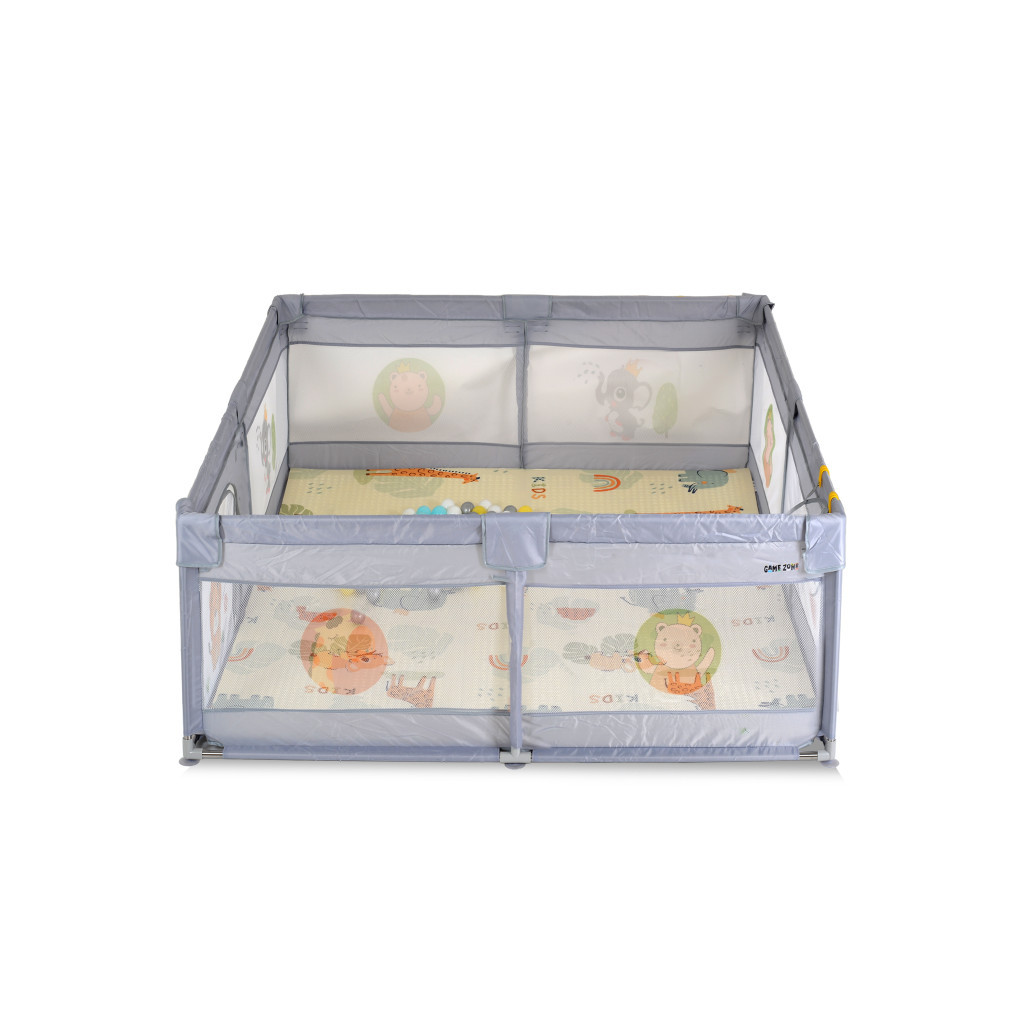 GAMEZONE járóka összecsukható szőnyeggel, 60 labdával 120x120 SZÜRKE